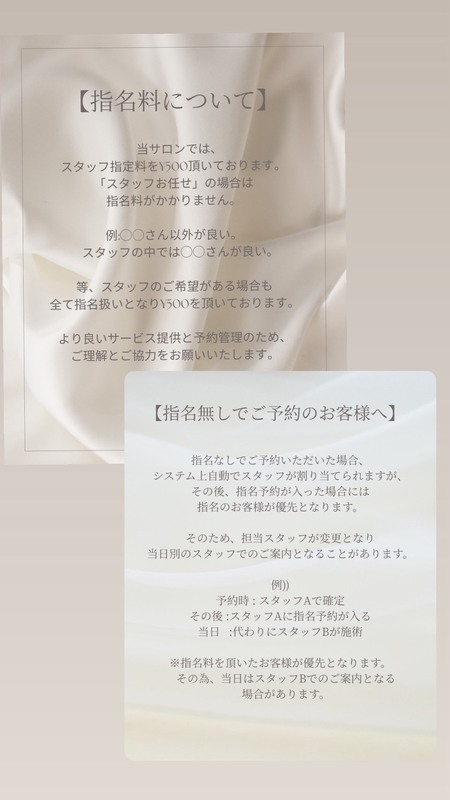 【スタッフ指名料】【指名なし予約】について大切なご案内です。