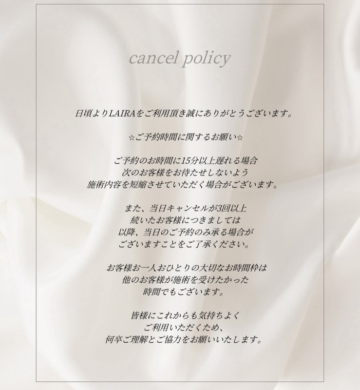 ご予約のお時間に15分以上遅れる場合、次のお客様をお待たせしないよう